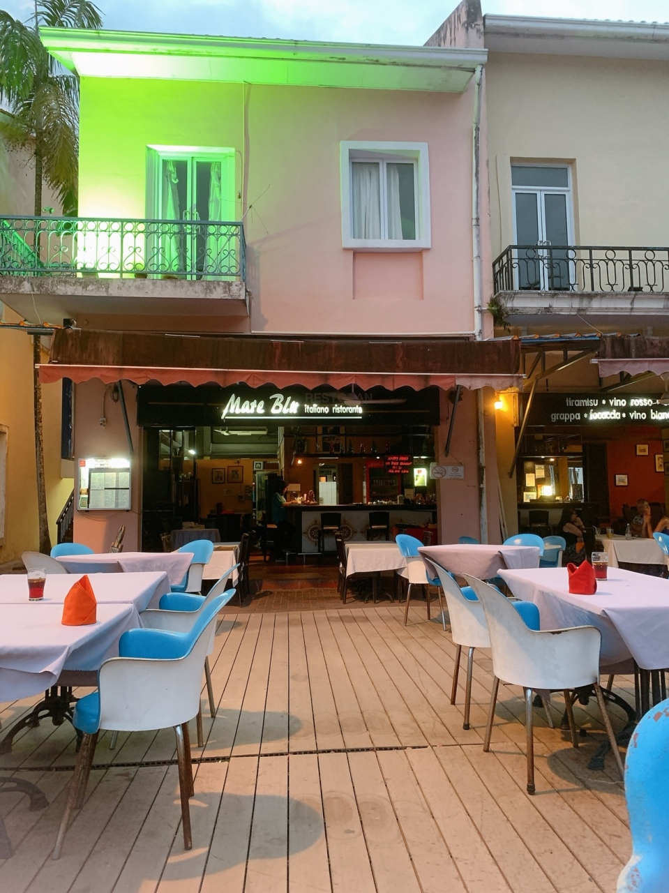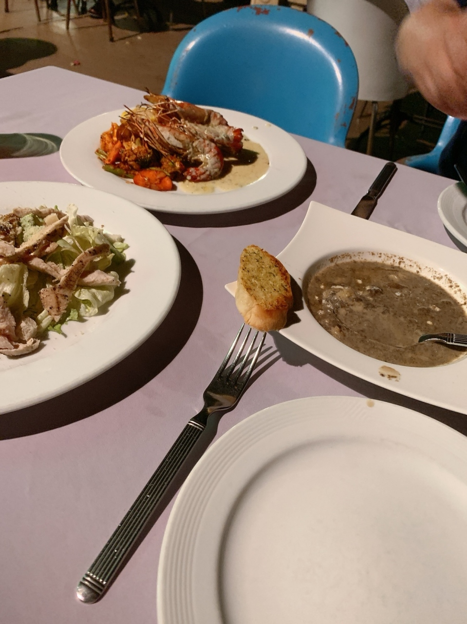 ダナに宿泊し、どこで食べようか迷っているときに旅行記でここが勧められていたので決めました。ビールは日本円で約150円。ピッチャーが安いらしく勧められましたがジョッキで。パスタは味付けがイマイチでしたが、海老のソースが最高に美味しかったです。