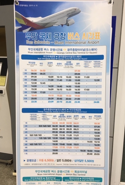 光州と木浦方面への高速バスが当直便に合わせて運行しています。タクシーも数が少ないらしく、飛行機のクルー達はハイヤーで送迎して貰っていました。