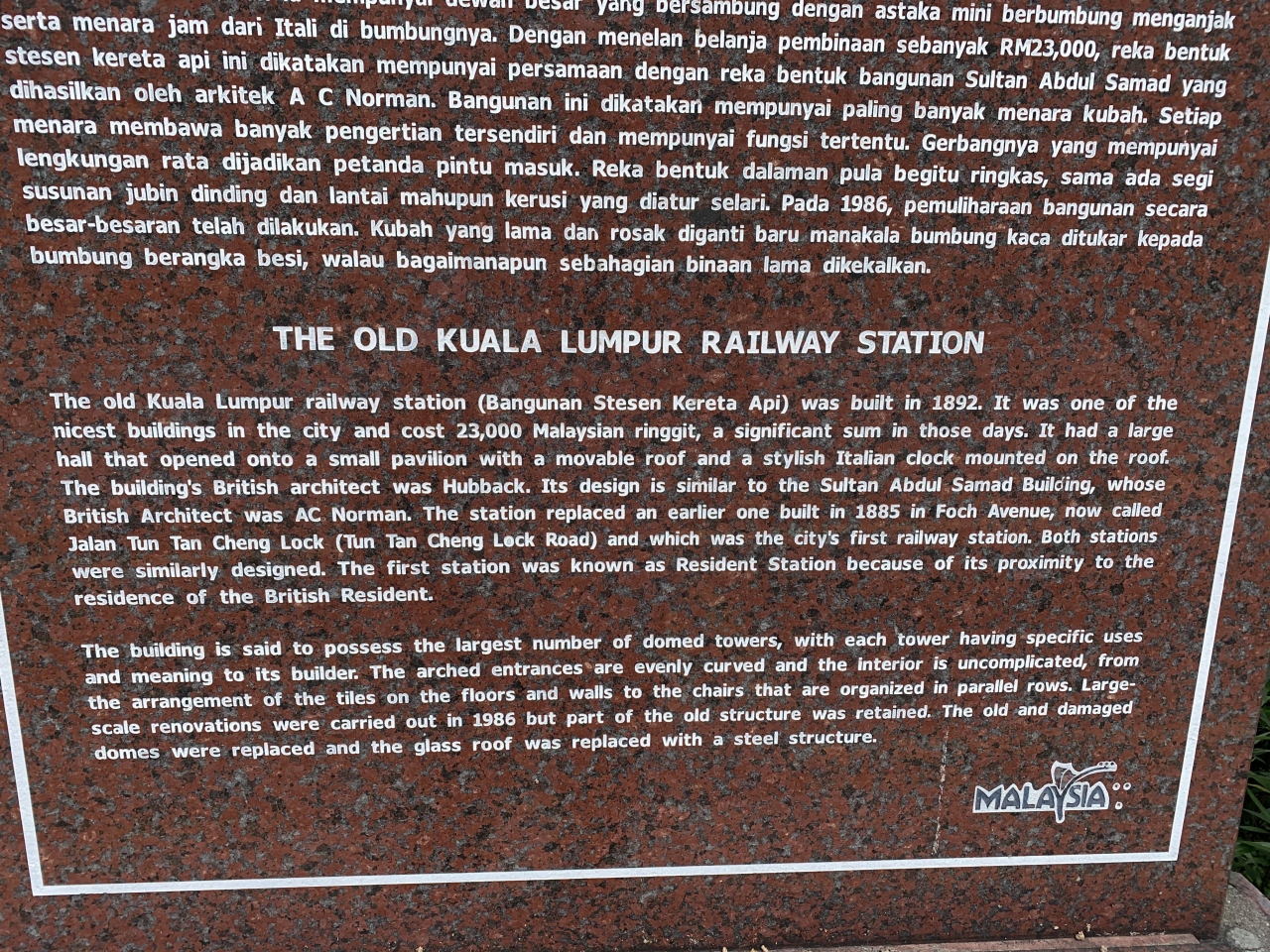 歴史を感じる建物です。列車に乗らずとも駅舎を見るだけでも価値のある建物です。アクセスが観光客にはあまり便利ではないように思いますが、少し歩くとムルデカ広場やチャイナタウンからもいくことができます。タクシーがつかまりにくいエリアです。
