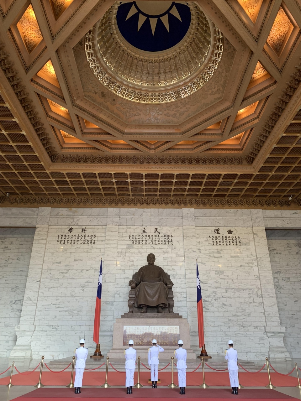 中正紀念堂の蒋介石像の前で行われる衛兵交代式は無駄な動きがない一糸乱れぬ動きはまさに必見です。