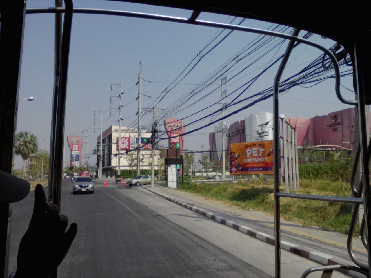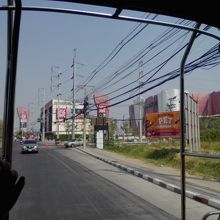 コラート市街の北2.5kmほどにある「Central Plaza」から新バスターミナルまでソンテウに乗りました。出入口にいた警備員に尋ねたら親切に教えてくれました。番号は水色の車体の7番。距離にして約2.5km、あっという間に到着。料金は8B。バスターミナルの中には入らず向かいの路上で降ろされました。その後このソンテウはターミナル21前を通りターオ・スラナーリー像まで行きます。もちろん逆ルートも走ります。