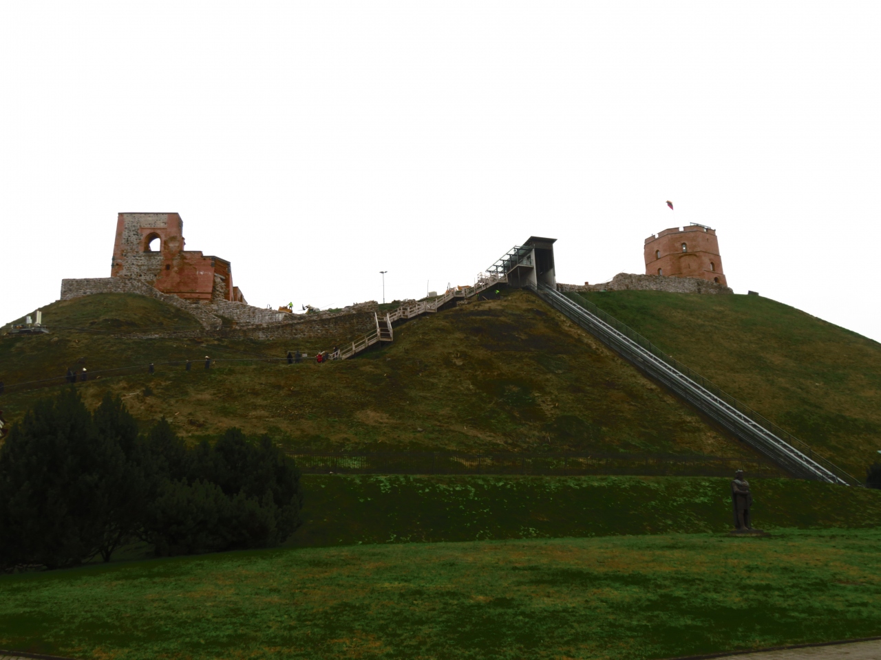 ゲディミナスの丘に登る為にはケーブルカーか徒歩のどちらかになります。もし徒歩で登る際はゴツゴツした石畳の勾配を歩いて行かなければいけません。私は徒歩で登りましたが、かなり歩きづらくしんどかったです。足腰に自信がない人や、当日雨だったりした場合はケーブルカーが動いていれば、ケーブルカーで上まで登った方が良いと思います。私が訪れた時は業者が城壁の工事をしており、ケーブルカーも業者が上り下りで使用していたので、観光客は利用できませんでした。