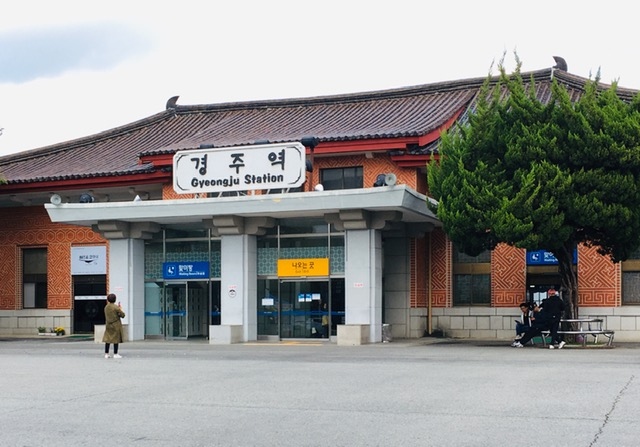 慶州までは大邱から高速バスで行きましたので、鉄道を利用することは無かったのですが、駅舎建物が魅力的と聞き、レンタサイクルで出かけてみました。
