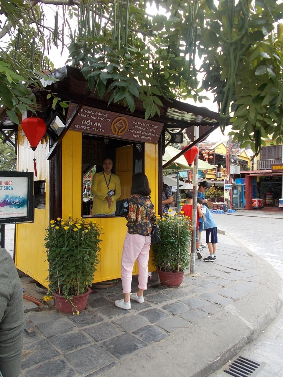 このホイアン観光チケットブースは町のいたるところにあります。ホイアン観光には会館や博物館などの施設の見学にはチケットが必要です。1日使用権で5枚つづりで12万ドンです。そのチケットを販売しているのです。ブースが小さいですがすぐに見つかります。