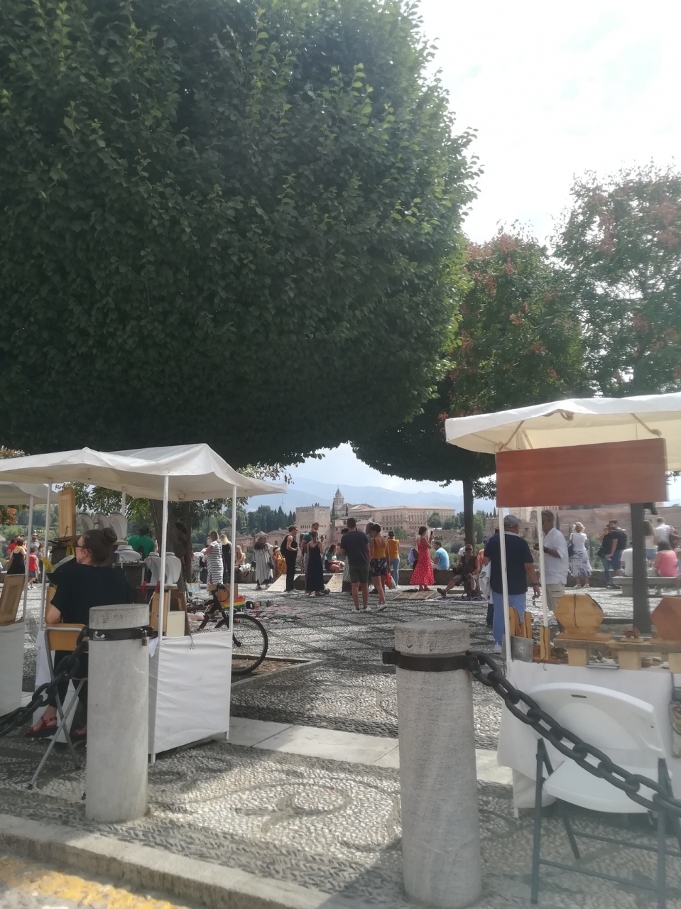 アルハンブラ宮殿をのぞむサンニコラス展望台とサンニコラス教会に隣接した広場。テレビでもよく「アルハンブラ全景が見れる場所」として紹介されているサンニコラス展望台を目指し観光客の方も多く露天も出ていて賑やかです。