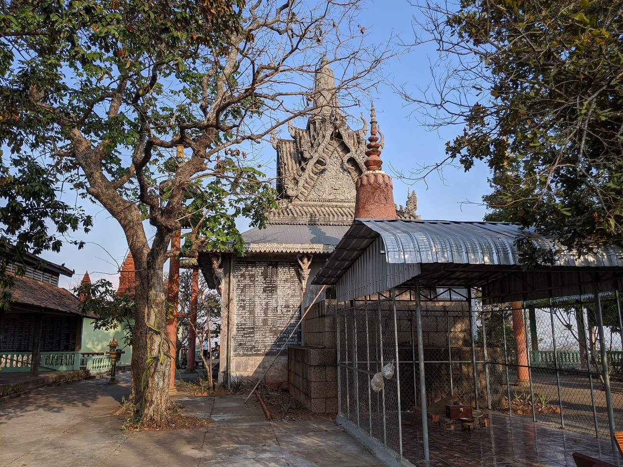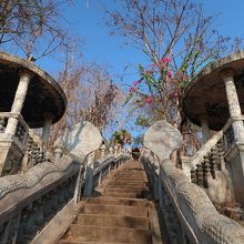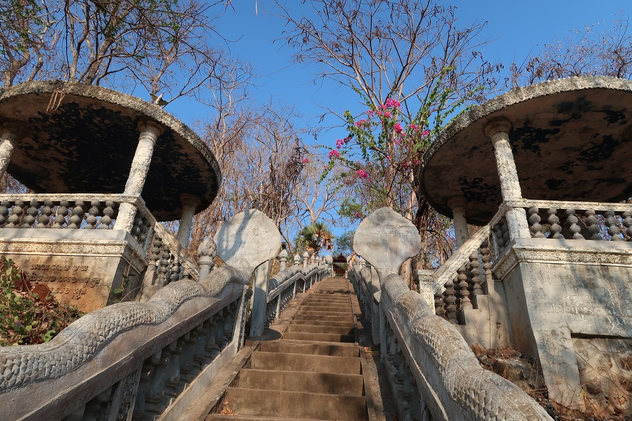 コンポンチャムの中心部から西へ7キロメートル離れた所に小高い丘が2つあり、一方がプノンプロス「男山」、もう一方がプノンスレイ「女山」です。プノンプロスの寺院までは車で上れますが、プノンスレイは急な石段を徒歩で登ります。