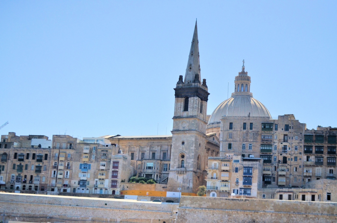 スリーマからバレッタまでの船の上からよく見えるこのドーム型の建物はBasilica of Our Lady of Mount Carmelマウント・カーメル大聖堂だ。1570年頃に建設された。対岸のスリーマからもよく見える象徴的な建物だ。スリーマフェリーからだと外観がよく見えるので、外観を撮影するならスリーマフェリーがおすすめ。