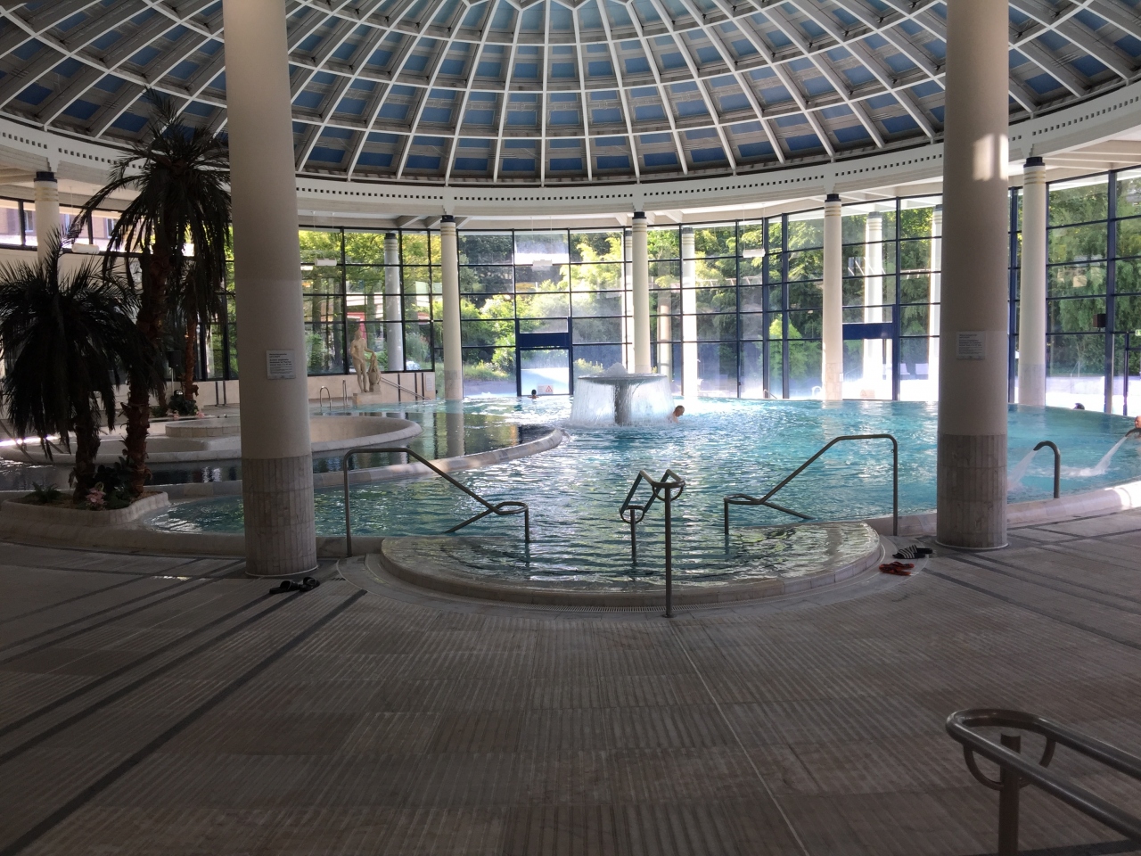 前日にフリードリヒススパに行き、翌朝からカラカラ浴場にきました。日本で言うスーパー銭湯の巨大版という感じでしょうか。1階は大きな浴場(水着着用)屋外の温泉プールもあります。2階のサウナは水着着用不可です。移動時はタオルを巻いても大丈夫でした。たくさんサウナがありますが薪サウナが高温で最高でした。7月の平日に行きましたがガラガラでした。