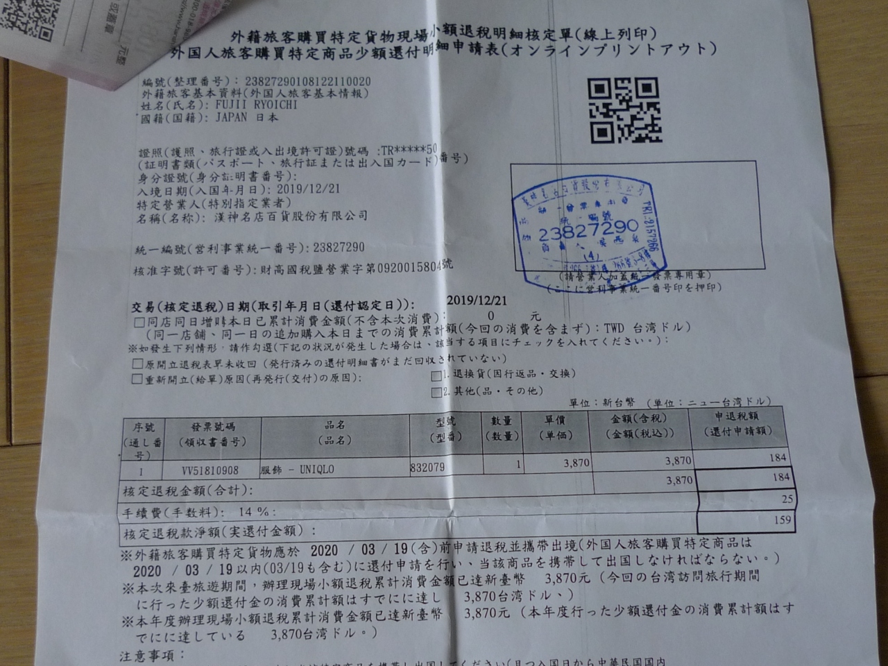 4階にあるサービスカウンターでバットリファンドの手続をすると、その場で現金還付された。