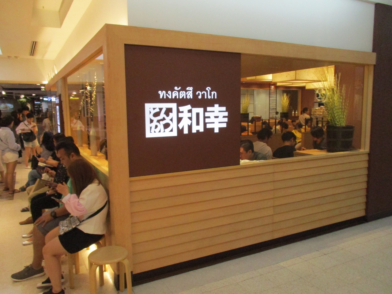 厨房が見える座席に座りました。和幸で提供されるとんかつの衣がサクサクなので、どうやっているのか見ていると、揚げるところで極上そうな一斤のパンからパン粉を作っていました。なるほど、おいしさの秘密の一端を確認することができました。
