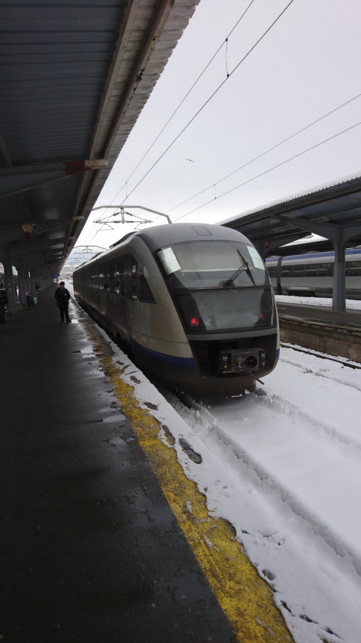 ブカレストから隣国ブルガリアの首都ソフィアまでは列車を2本乗継行くことになった。途中ルセで接続列車がなんと4時間遅れと表示されていて唖然となる。冬は1日に1本しかないようなので、しかたなく駅舎で待つことにした。暖房が入った待合室があったのがせめてもの救いだった。