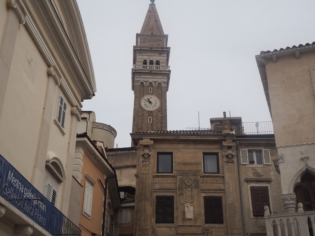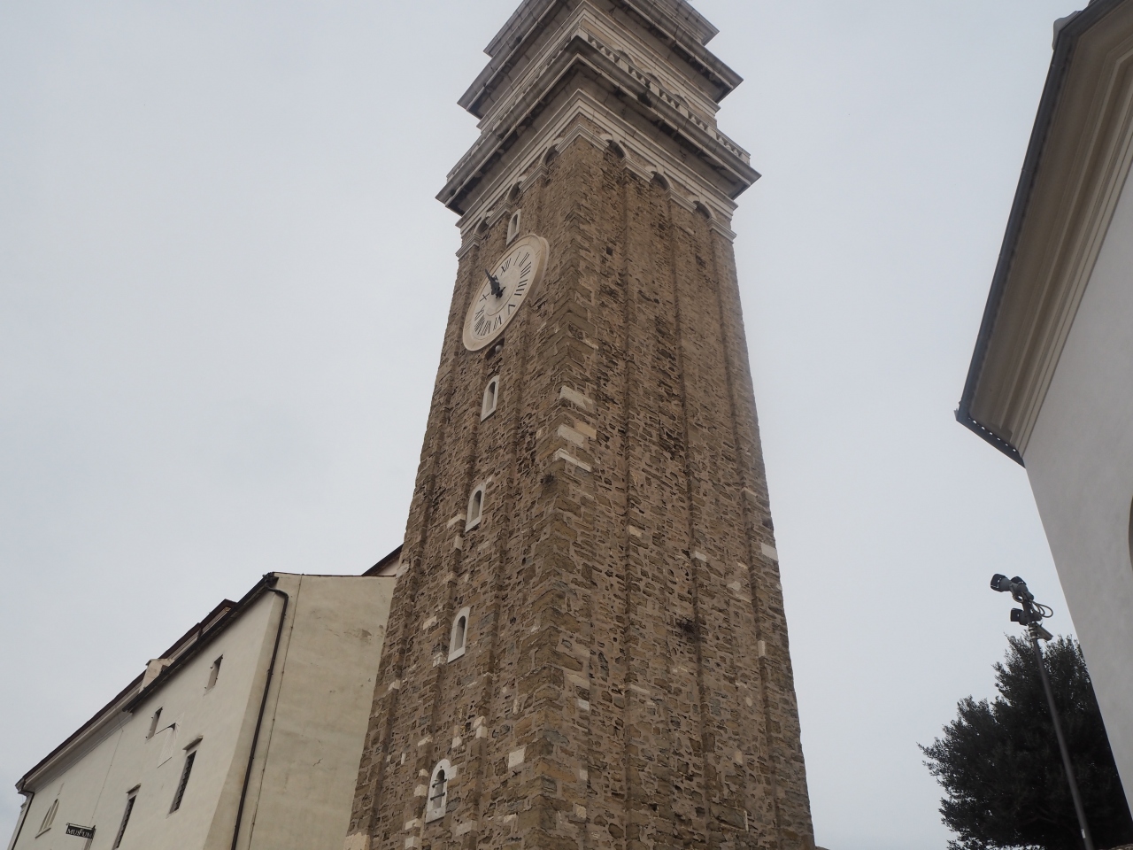 ビランの旧市街の北側の小高い丘にある聖ユーリー教会の鐘楼です。旧市街の広場からは少し坂道を数分上っていく必要があります。高い場所に建っていて、高い塔なので、旧市街の街や広場からもよく見えます。鐘楼はベネチアのサンマルコ広場にある鐘楼によく似ています。似せて作られたもののようです。鐘楼へは登るのは有料ですが、塔の上まで登ることもできます。