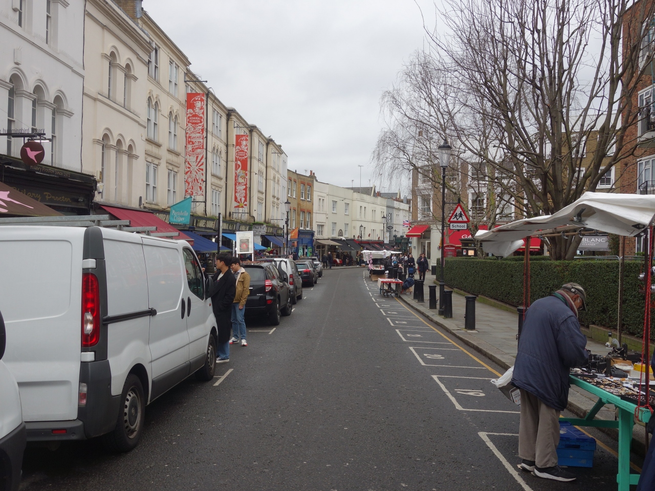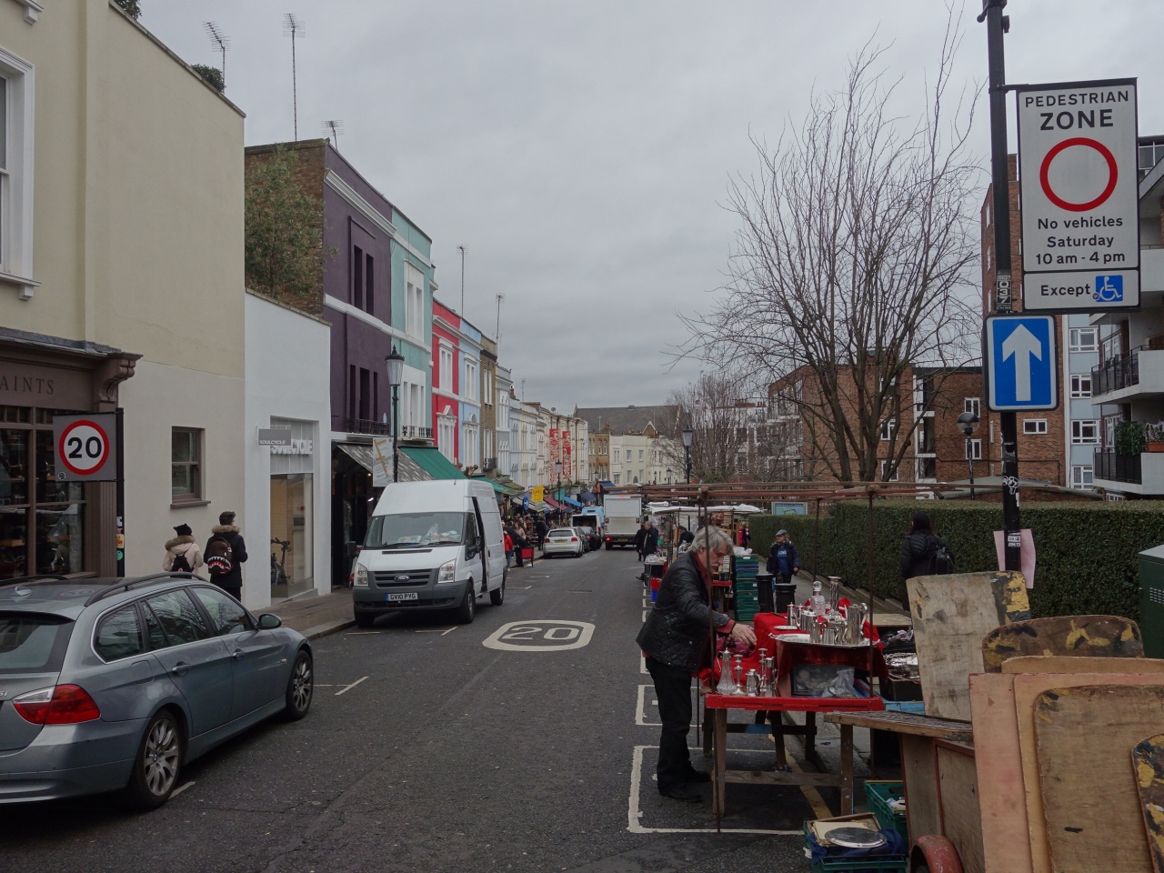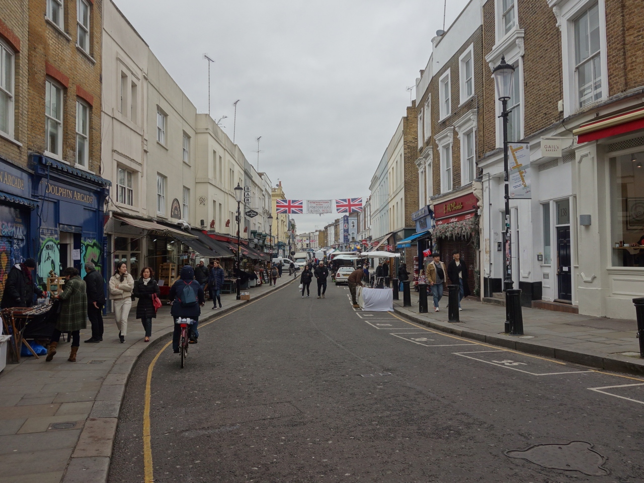 Portobello Market の出る道路。ノッティングヒル・ゲート駅から歩いていきます。