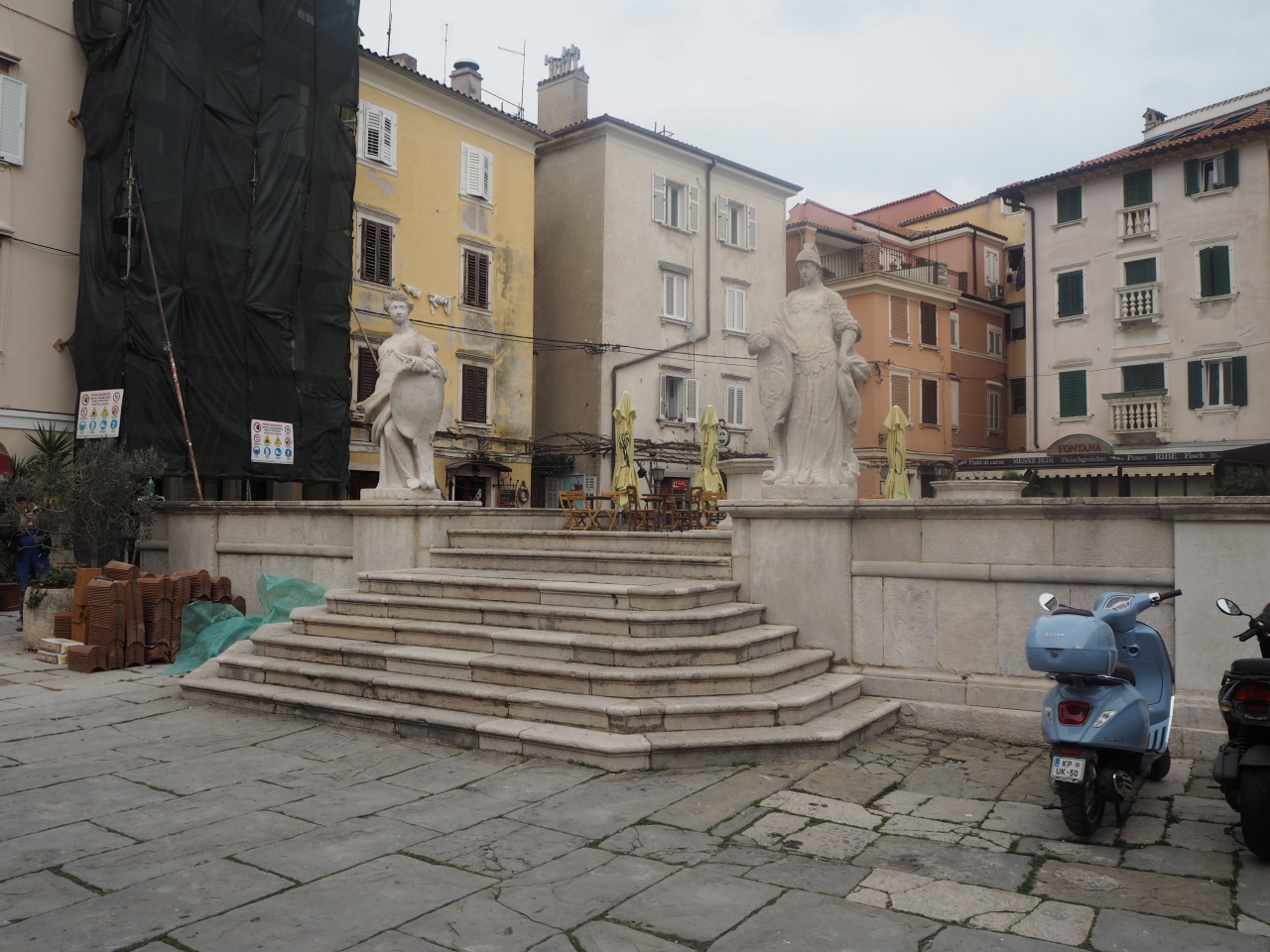 ビランの旧市街のタルティ―二広場から岬の方へと旧市街のなかの曲がりくねった道を歩いて行くと出くわす広場です。1メートルほど高くなった台の場所に広場が出来ています。台の下は水の貯水槽になっているそうで、雨水の少ないこの地域では必要なものであると思われます。また現在のタルティ―二広場に街の中心が移る前までは、ここに市庁舎などが置かれ、街の中心であった場所です。迷路のような道を通っていくので、少しわかりにくい場所です。