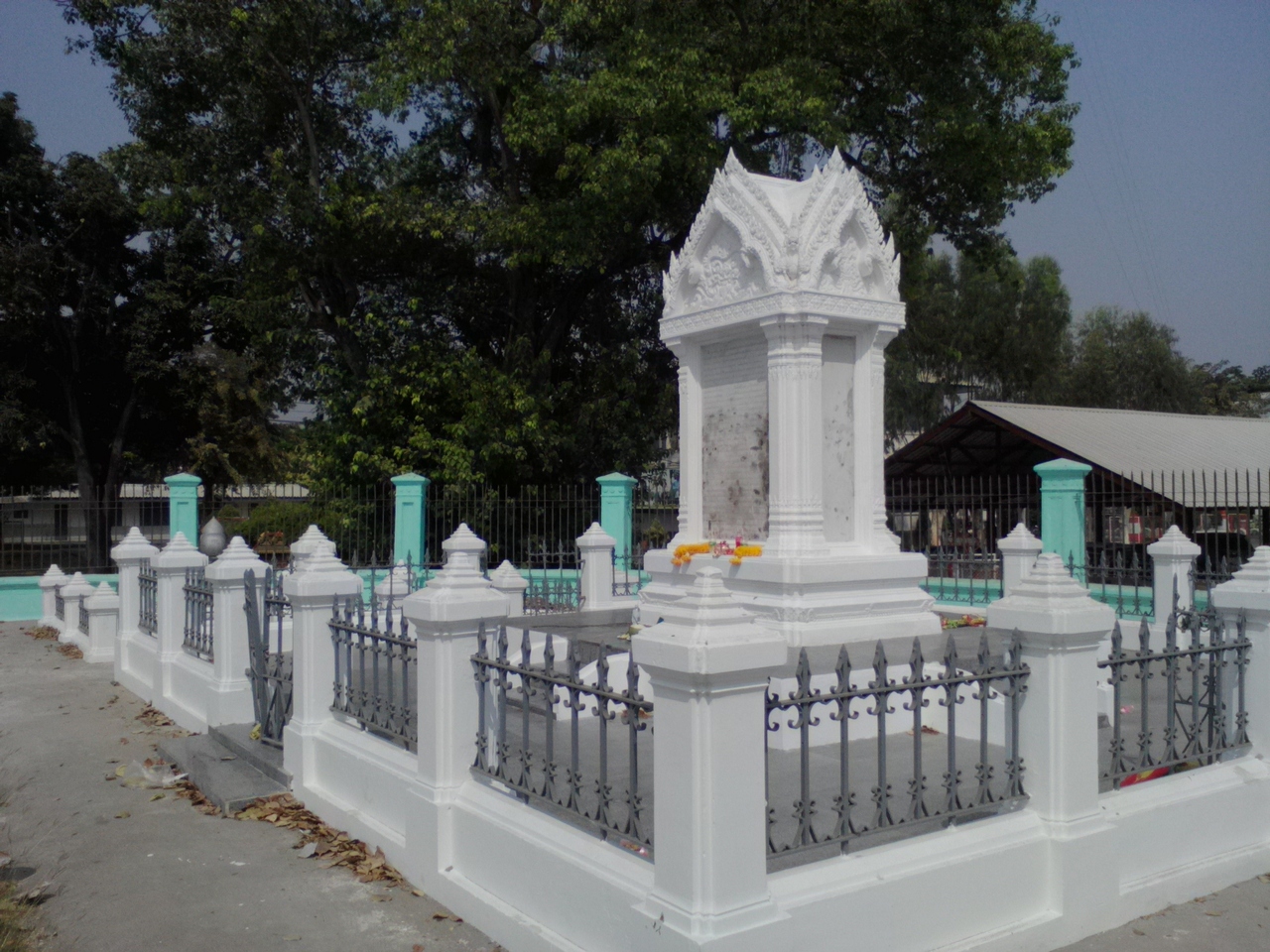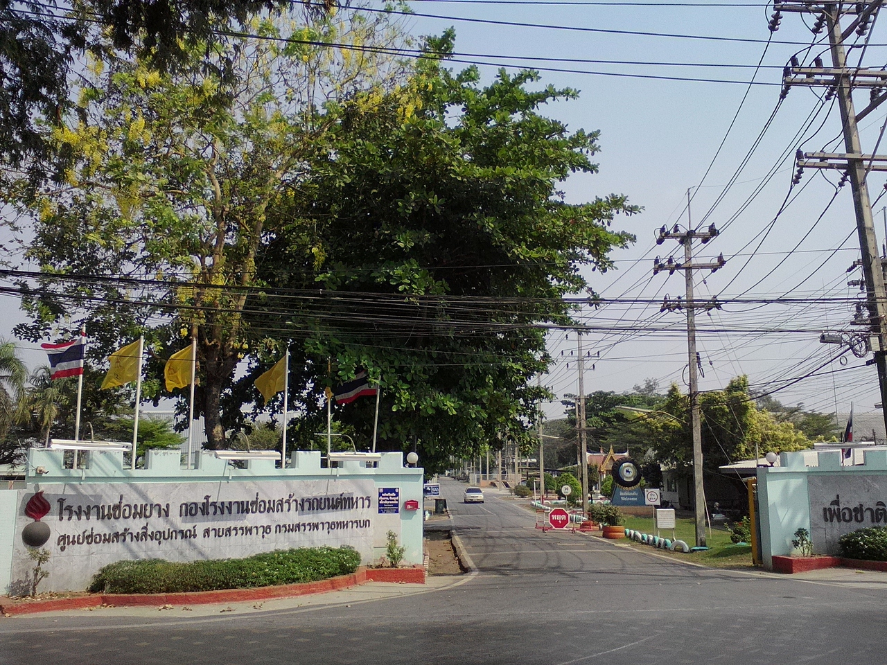スリヨータイ王妃のチェディーのすぐ近くなのでついでにちょっと覗いてみました。肝心の予備士官の訓練は行われていませんでした。軍の施設なので安易には立ち入れませんので外から眺めただけです。道路沿いの一画には何も表示のない白い碑が建てられしました。軍関係のものかもしれません。