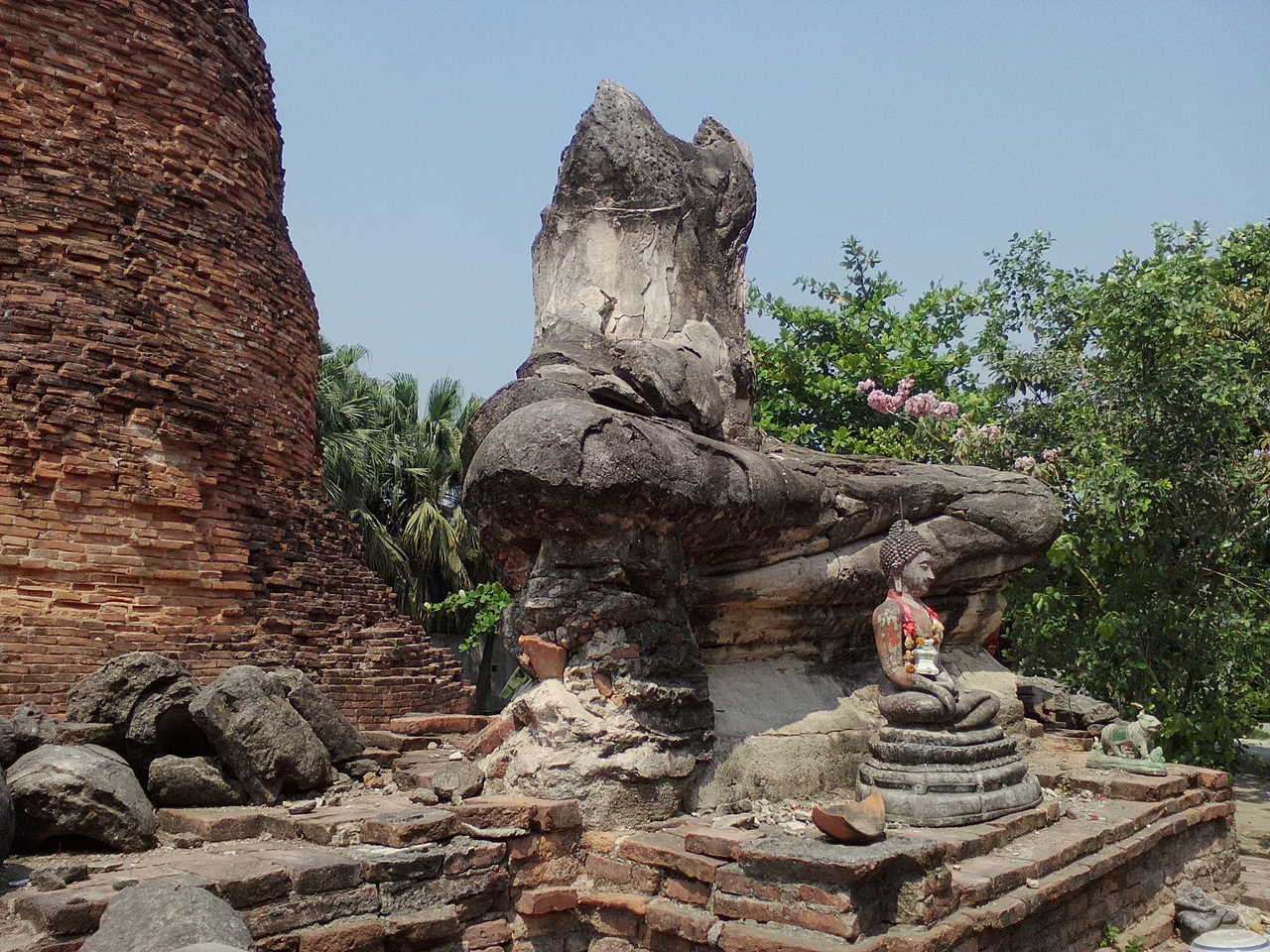 ワット ラーチャブーラナから南側のナレースエン通りを西に300mほど行ったところにあります。顔と腕のない破壊された仏像とその背後にある崩れかけた仏塔のみがある小さな遺跡です。観光客が立ち寄ることはなさそうな場所ですがなかなかいいところです。