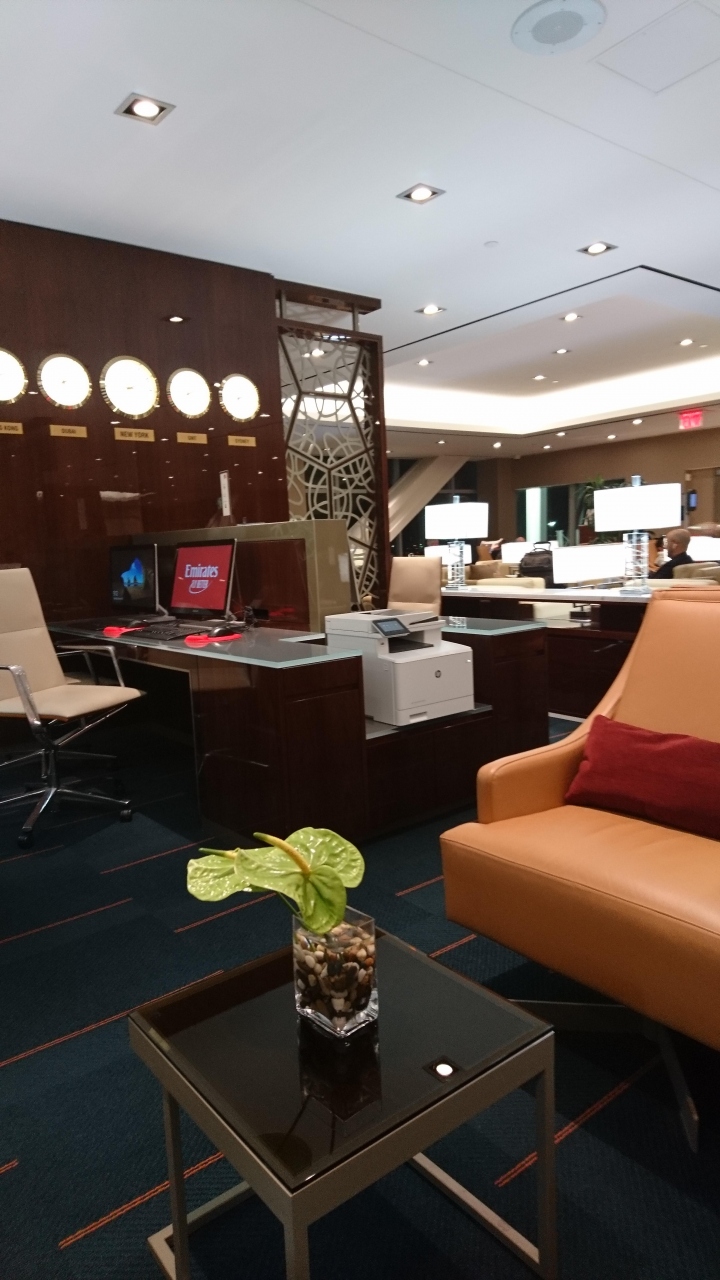 念願のエミレーツのファーストクラスの特典航空券で搭乗できるので、勇んで早目にチェックインしたが、ラウンジはビジネスと共通でちょっとがっかり。BAの時はファーストクラスとはすごい差があったので期待はずれだった。