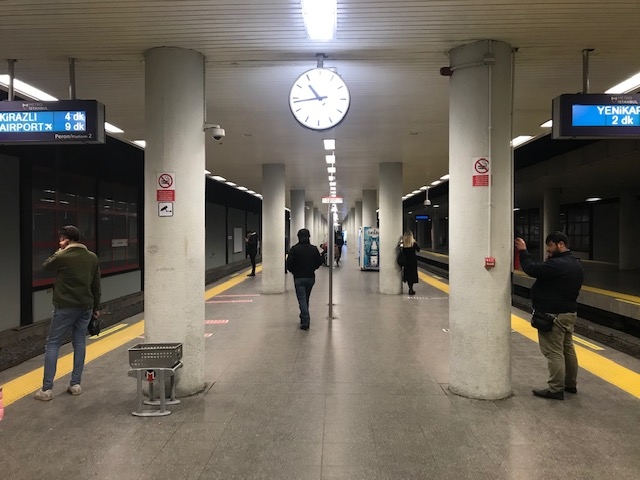 イスタンブールのヨーロッパ側のバスセンターの駅です。地上に出ると、そこはバスセンター(オトガル です)。最初空港からここに到着した時は、広場の真ん中に地下行く場所を見つけましたが、そこは地下鉄の入り口ではありません。地下鉄の入り口は周りの建物の中にあります。