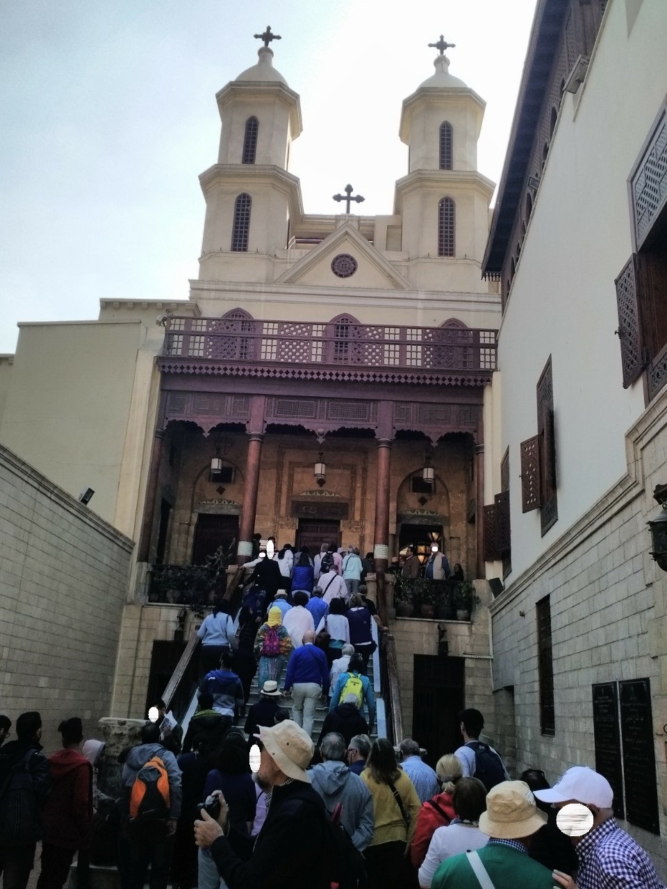場所はマリ・ギルギス駅の前のコプト博物館の隣に位置しているので地下鉄から宿世の距離にあります。訪れた当日は礼拝堂で礼拝が行われており沢山の礼拝者が訪れていました。