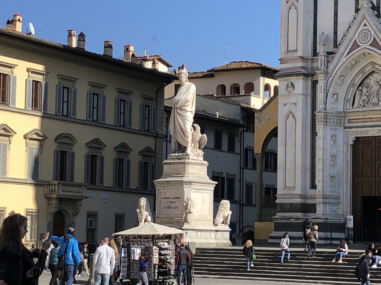ツアーで前を通りました。フィレンツェ初の教会です。青空に白くそびえていて大変美しいです。フィレンツェルネッサンスの凝縮と言われているそうです。教会内部にはミケランジェロ、マキャベリ、ロッシーニなど276の墓が納められているそうです。