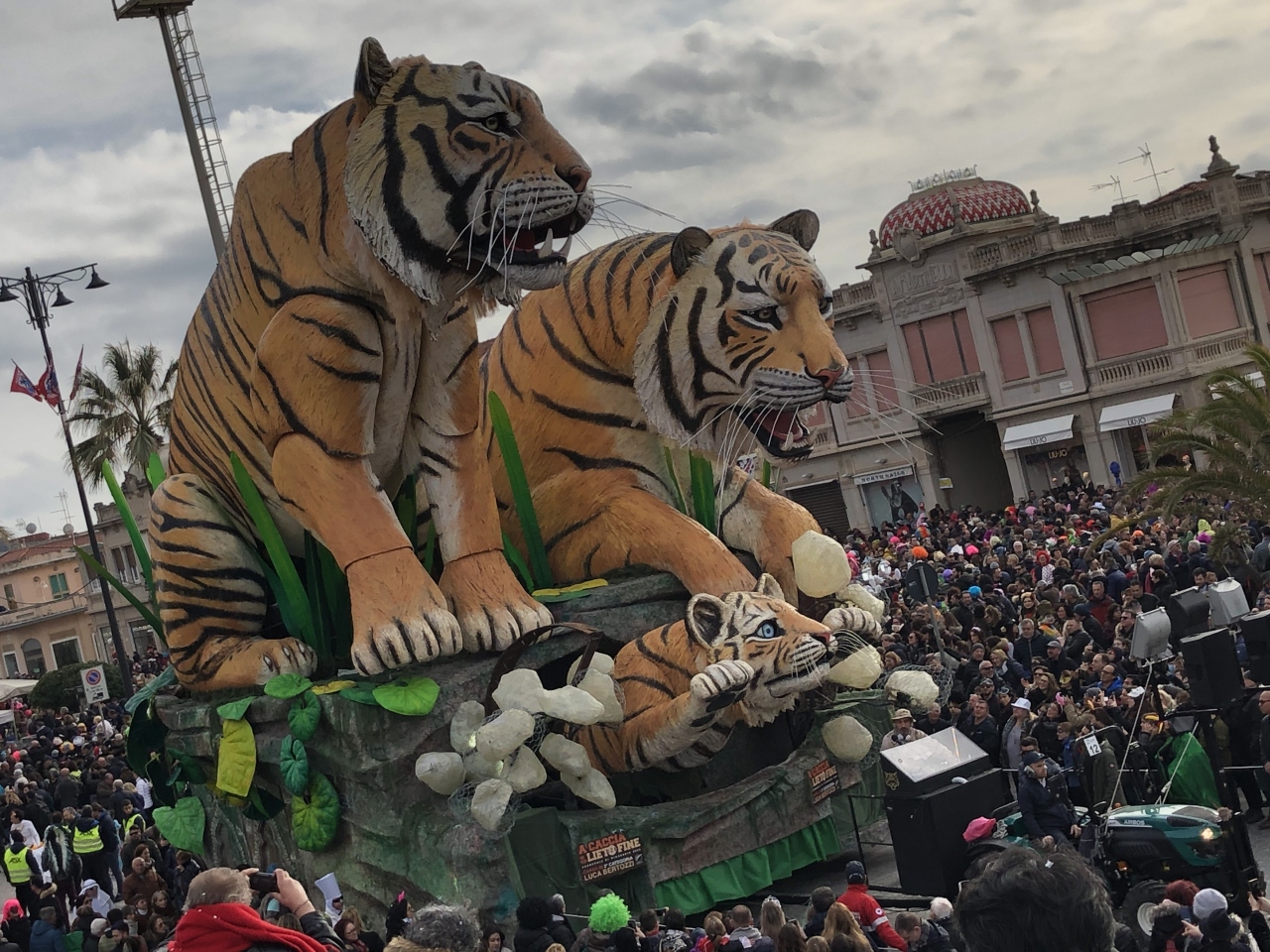 ツアーで、観覧指定席に座って鑑賞しました。「牛」「タイガー」「オズの魔法使い」「不思議の国のアリス」などの大きな山車と、ダンス隊のパレードを鑑賞しました。タイガーの目が動くなど、細かい動きも見られ、素晴らしかったです。
