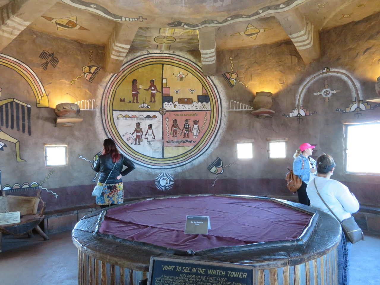 アメリカ原住民の文化に触れることのできる塔を登ると、コロラド川が削った流れが一望できます。
