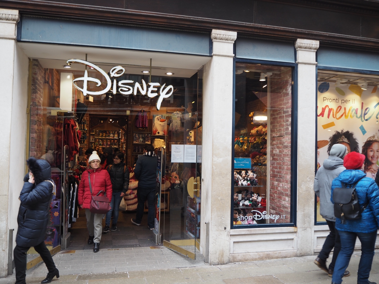 リアルト橋の近くにディズニーの店があります。路面店で店はそれほど大きくありません。ベネチアになぜディズニーがあるのかとも思うのですが、世界的な人気なので、イタリア人も多く来ているのでしょうか。店内にはベネチアに関するグッズもあり、お土産にもなります。
