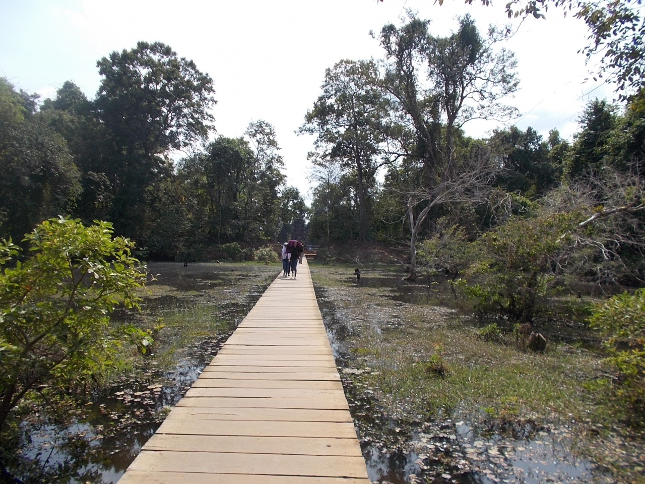 このニャック・ポアンはアンコール・ワット遺跡群の中で北側のエリアにあるジャヤタカ・バライネリアにあります。この遺跡は貯水池の中にあります。長い橋を渡ると威勢があります。橋が細く板張りで少し不安です。12世紀末中央にある祠堂は蛇にまかれた藻です。小さな祠が東西南北4つあります。配置も考慮した均整の取れた遺跡です。