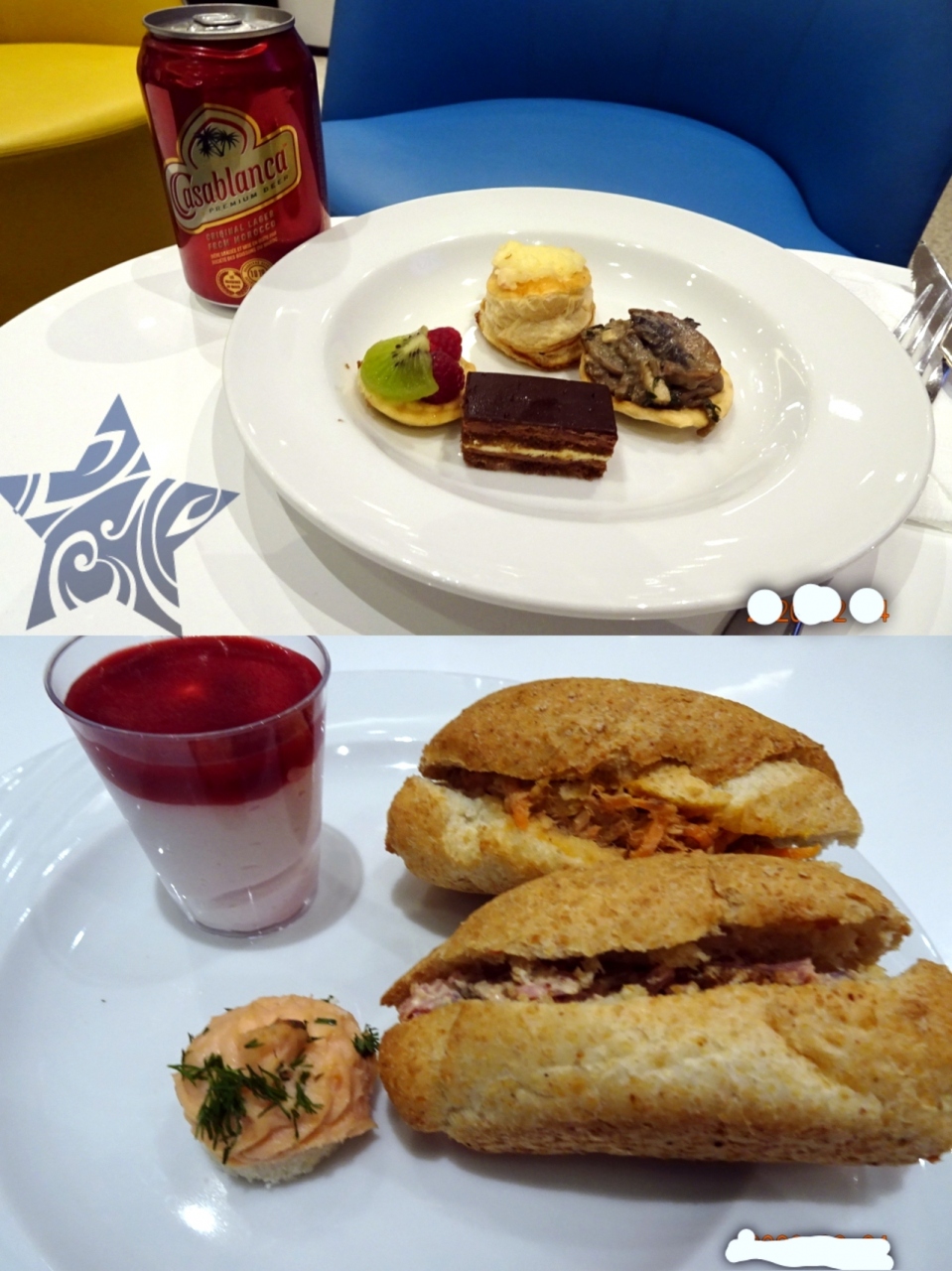 出発階はソフトドリンクのみ、下階には軽食類、アルコールもカウンター内にいた係員に伝えれば出してもらえました。シャワールームも完備されていました。