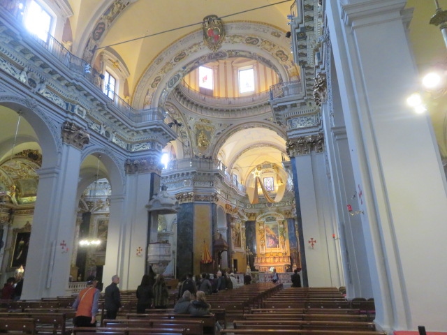 コートダジュールのニース旧市街にある教会、海岸沿いからちょっと離れた歴史的建造物が密集している旧市街のロセティ広場に隣接しているバロック様式の建物の教会でガイドさんと一緒に中に入りました、綺麗で鮮やかな部分があり見ごたえがありました、観光客が多くいました。