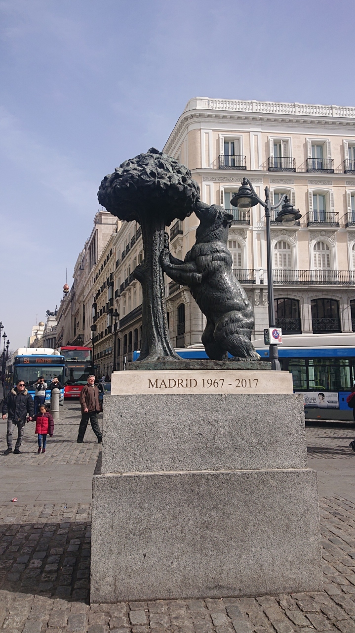 プエルタ・デル・ソルはスペイン語で太陽の門を意味し、この広場にはマドリードの紋章でもある熊とイチゴの木の像があります。