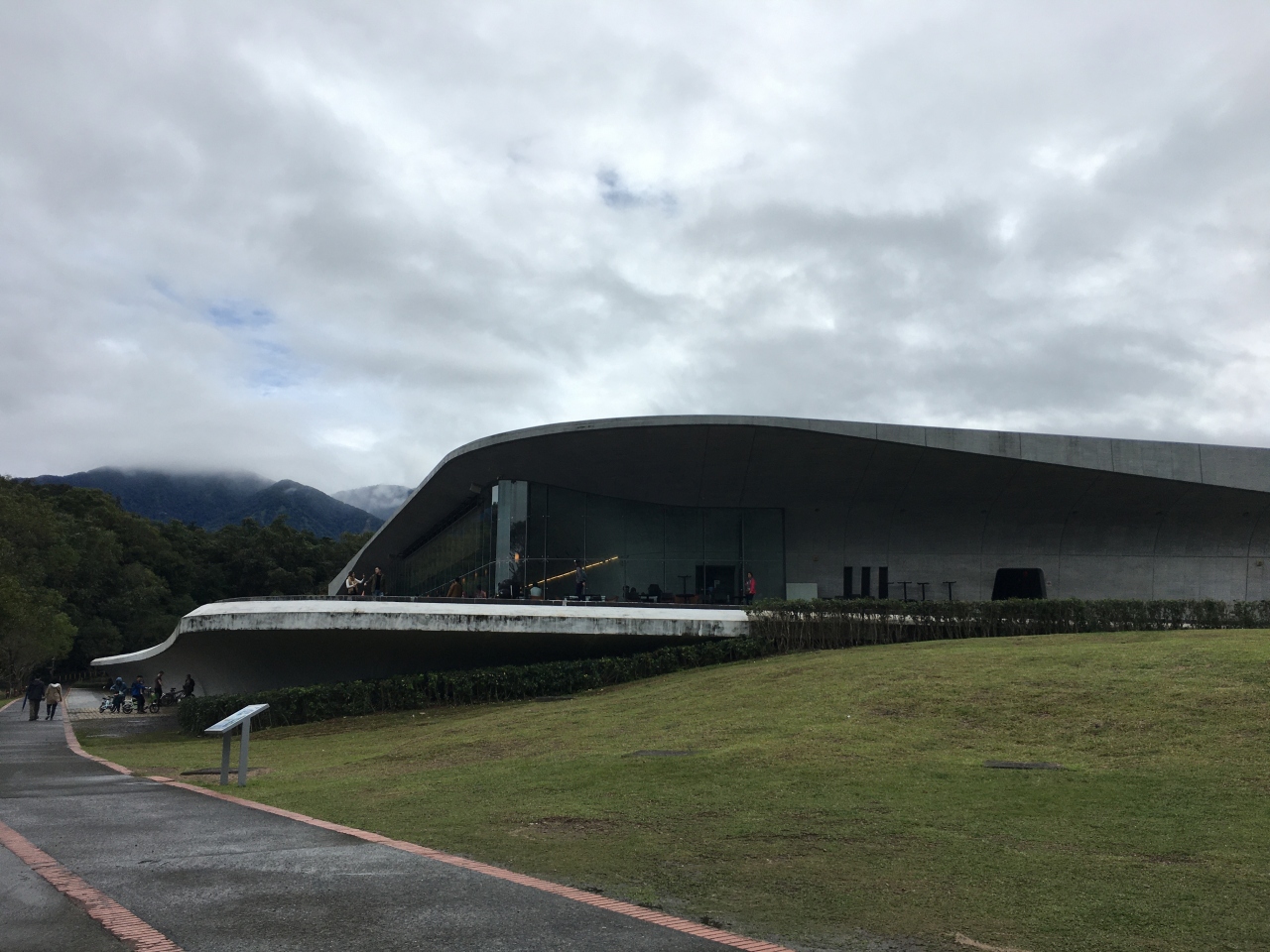 建物はとても大きく、コンクリート打ちっぱなしの建物なのですが、木目がコンクリートに入っており、木枠にはめて固めたものを積み重ねているようでした。中にはカフェもあり一休みするにはちょうど良いと思います。