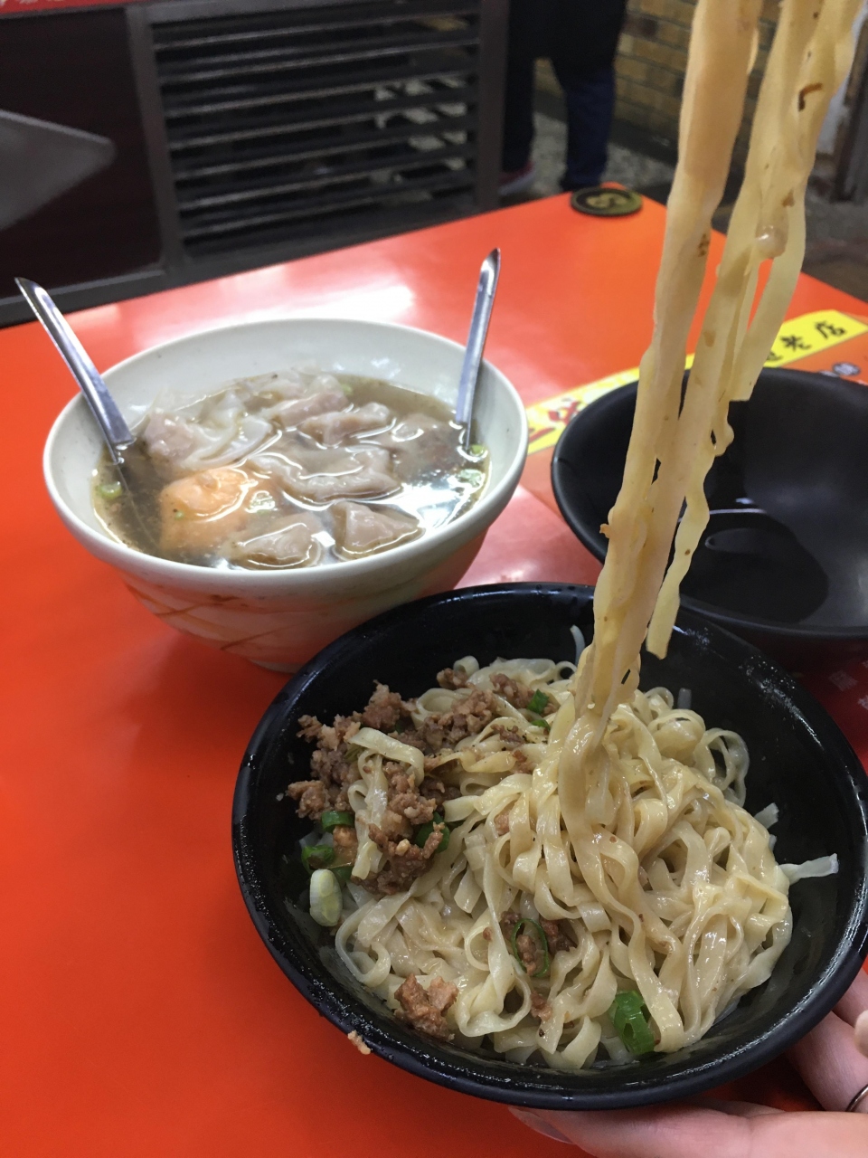 台中の中心地にある第二市場の中にあるヌードル屋さんです。オープンの少し前に訪れましたが問題なく受け入れてくれました。写真のメニューがあり指差しでオーダーできるのがありがたいです。そぼろ肉が乗った麺は、平打ち麺で具とよく絡み食べやすい。そして何より美味しい!実は角煮丼を食べた後だったのですが、するりと食べてしまいました。また行きたいお店の一つになりました。