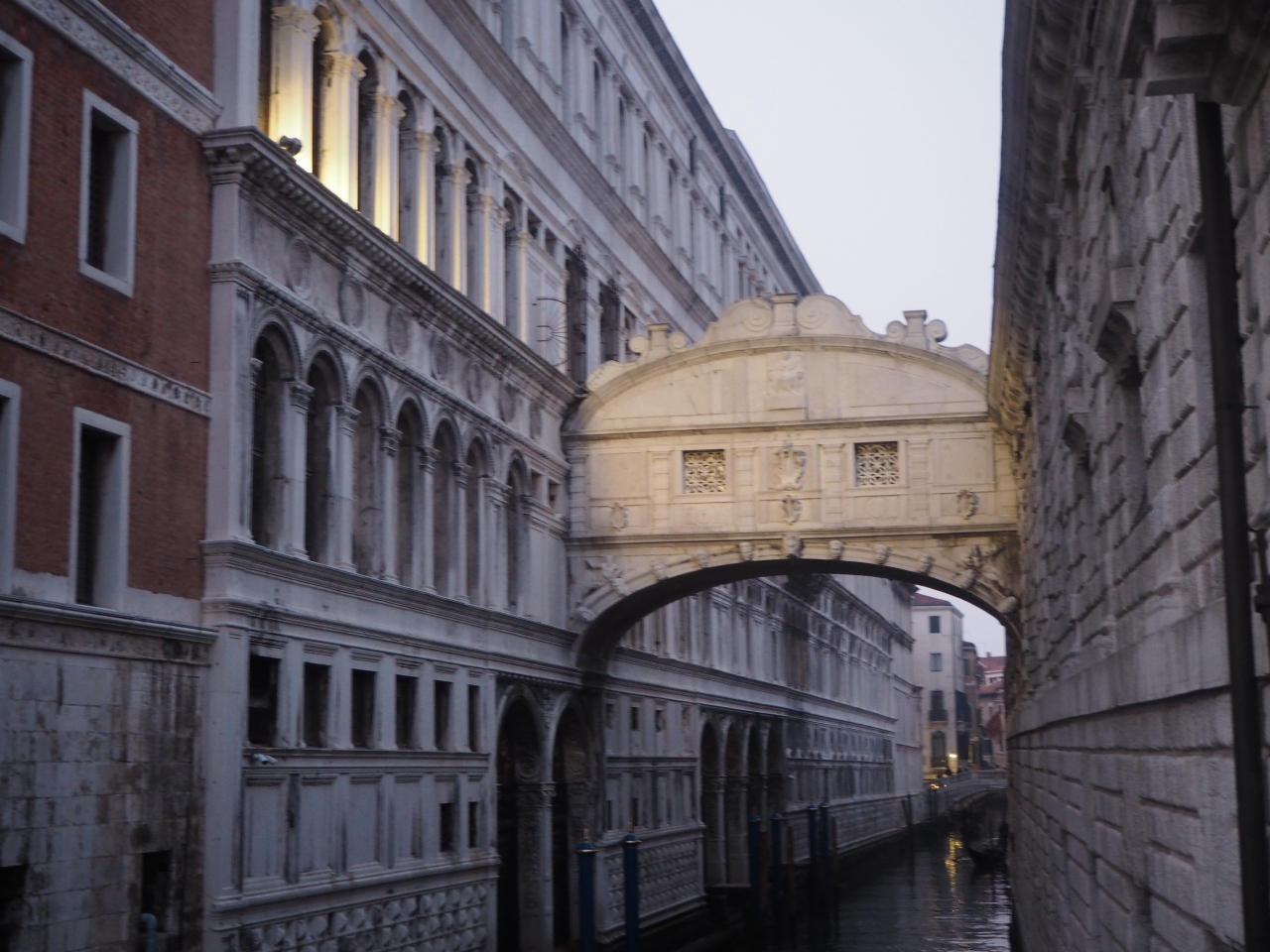 ドゥカーレ宮殿とその東にある監獄と結ぶ橋です。中世の時代などでは城や宮殿などと監獄はよく一緒に造られているので、珍しいことではないのですが、運河を隔てて造られているので、宮殿から監獄へと移されるときにこの橋をわたるということになるのです。5メートルほどの長さの橋で、特段目を見張るものはありません。宮殿から監獄に移されると脱出は不可能とされていましたが、監獄から脱出できたのはただひとりでカサノヴァだけらしいです。