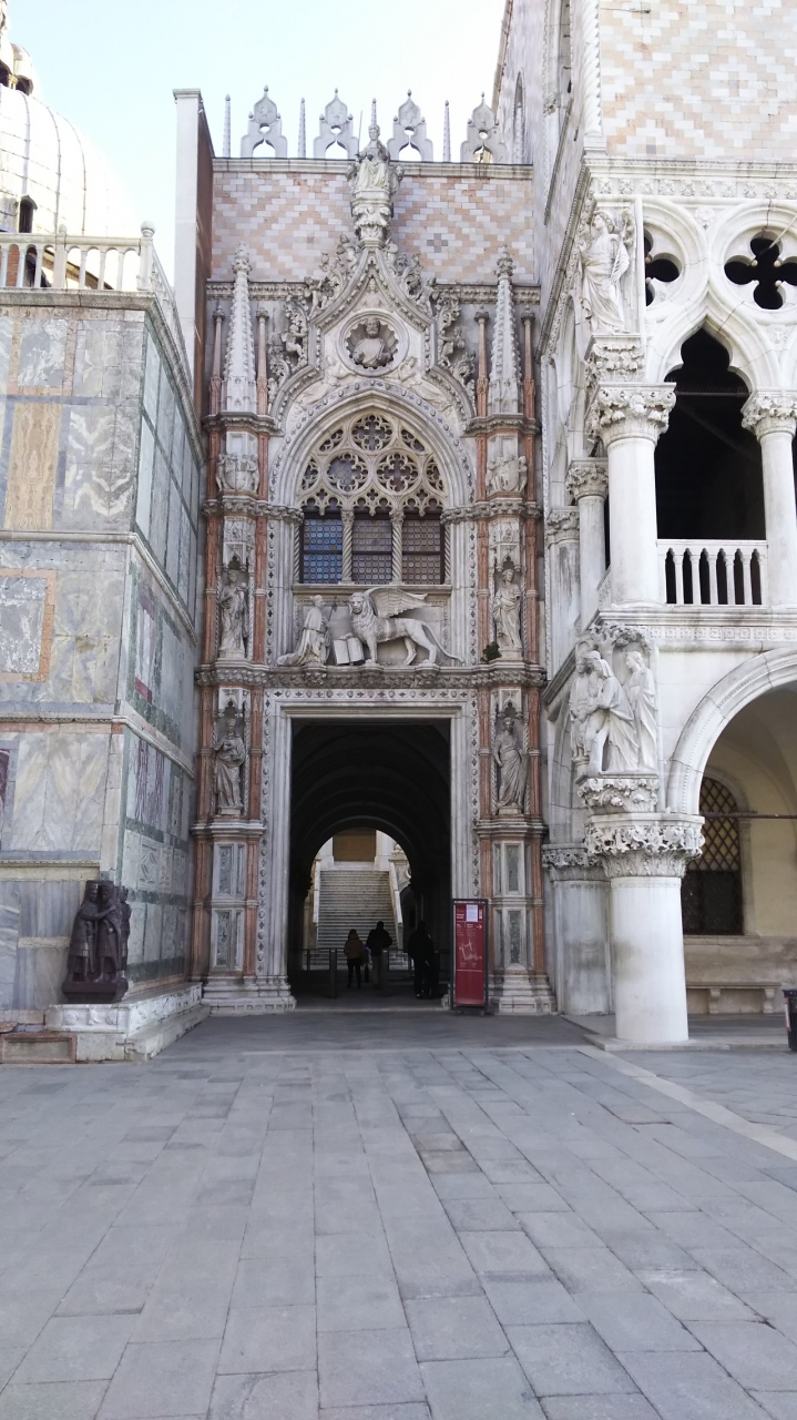 宮殿の見学の入場口ではありませんが、正式な宮殿の正門はこちらの布告門です。バルトロメオ・ボンによってつくられました。イタリア語ではポルタ・デラ・カルタと言います。