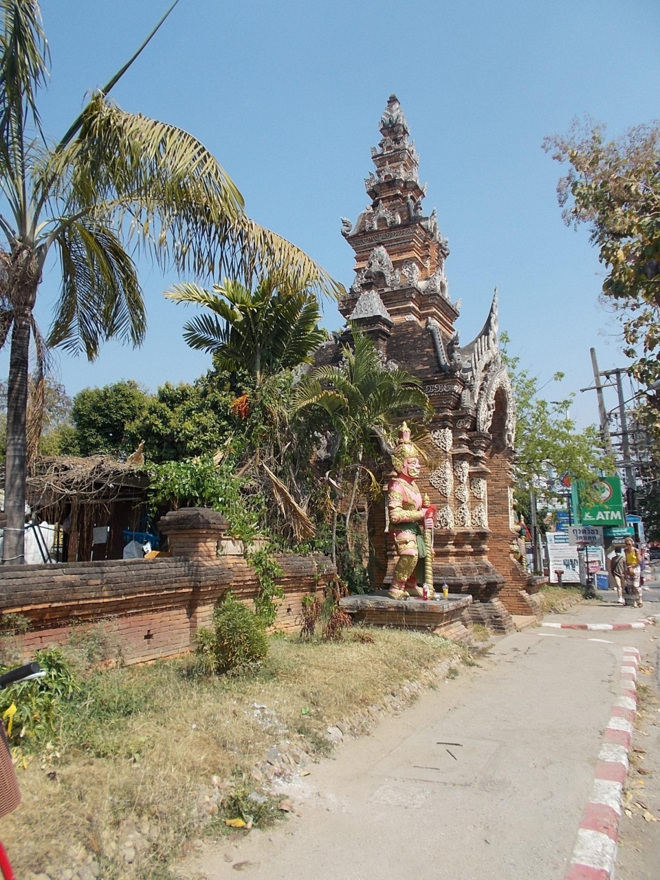 このワット・ローク・モーリーは旧市街地の外で北の堀に面したマネーノパラト通りに面しています。旧市街地の北門であるチャーン・ブアン門を出て西に進むとあります。現代的な本堂もありますが古い建物もあります。ヒンズー教の門で四角い仏塔などが歴史を感じさせます。16世紀前半に創建された新旧の存在する寺院です。