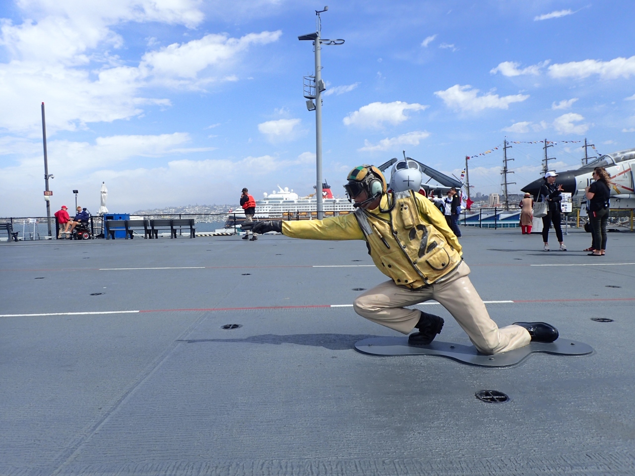 ブリッジツアーは、空母の指令室である艦橋を巡るツアー。狭く急な、階段というより梯子に近い場所を昇り降りするため、人数制限がある。退役軍人による英語の解説しかないので、何を言っているのか殆ど分からないのだが、見るもの全てが面白い。こんな機会はそうそうあるものではない。時間帯が遅くなると、待ち時間も長くなるようなので、早めに行くべし。