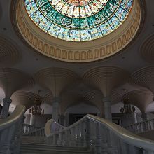 階段を上がると、真っ白な空間にところどころ金色のシャンデリアがアクセントになっていて美しいです。そして階段の目の前のドアを開けるとお祈りの部屋。この室内は撮影禁止なのが残念ですが、オールドモスクの親しみやすいインテリアとは対照的に、広くてすっきりと洗練されたデザインでした。