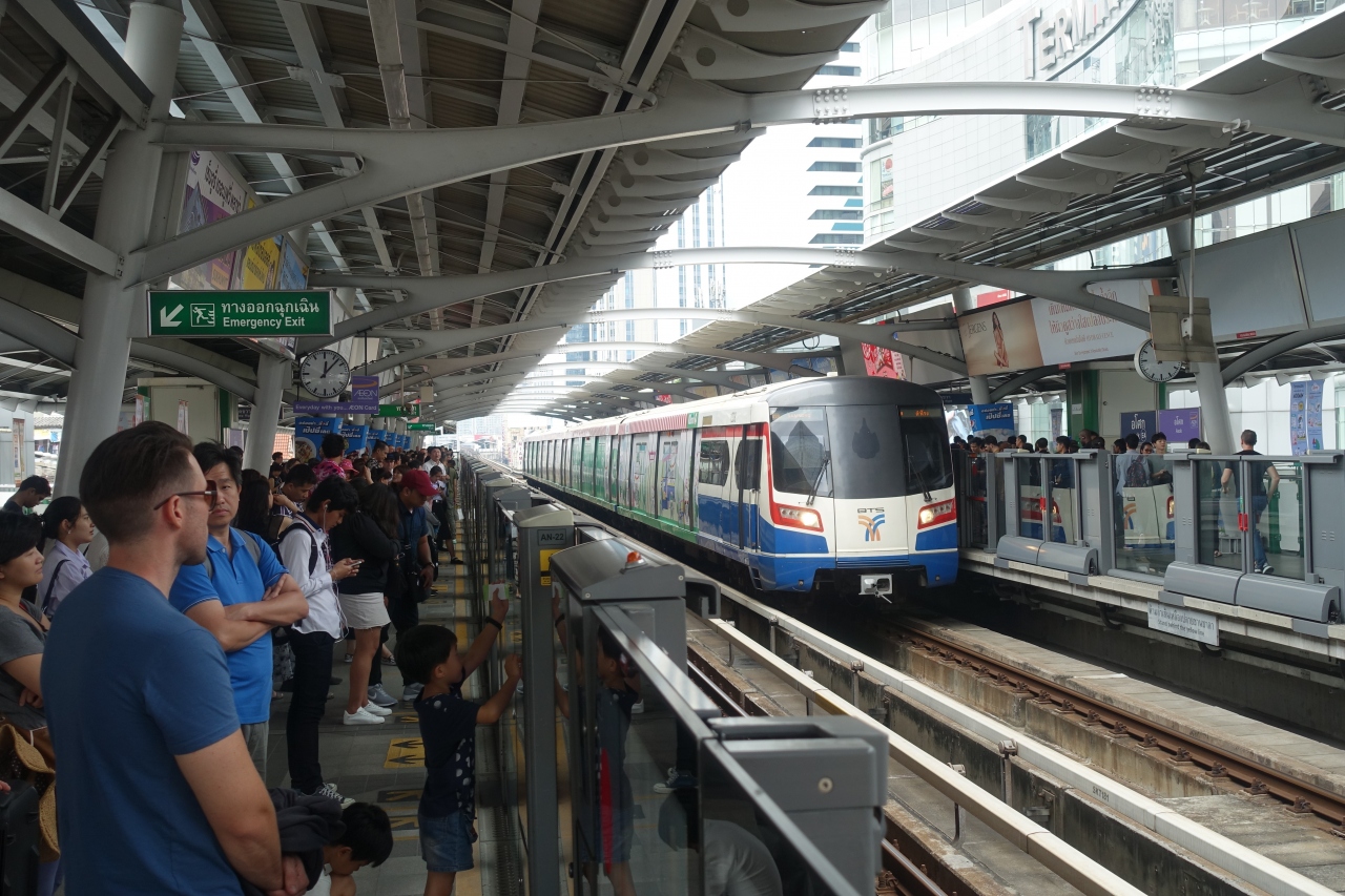 車内は冷房は効いていて涼しいですが、モニターの広告が日本と違って音声が出るタイプなのでうるさく感じることも。また、車内で携帯電話はマナーモードにして通話はご遠慮ください なんて習慣もタイには無いので、あちこちで普通に通話してます。