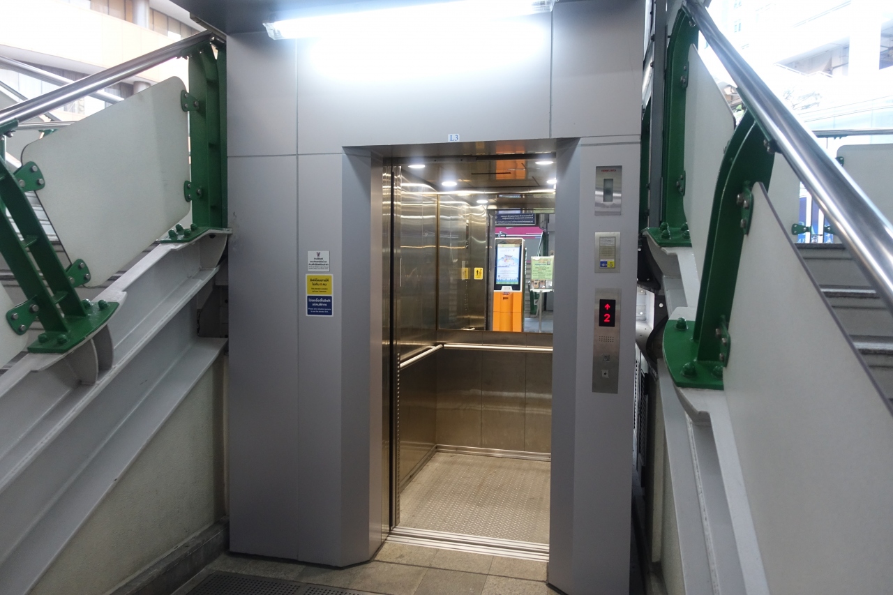 ほとんどの駅が地上階(1階)、改札階(2階)、ホーム階(3階)の3層構造。エスカレーターは基本一部の場所に上りのみの設置。エレベーターはだいたいの駅で見かけましたが、一部の駅では鍵がかかっていて係員を呼ぶ所もあり。スーツケースを持って利用する場合、エスカレーターやエレベーターが自分が利用する出入口に無くて、重いのを持って上り下りする可能性もあると思います。
