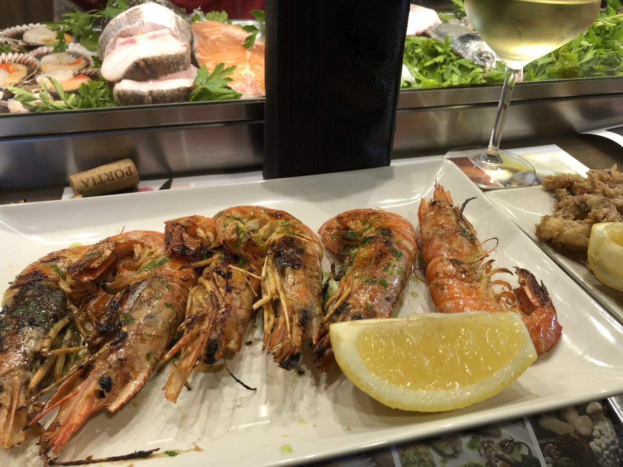 ショーケースにある、新鮮な魚介類を指差しで頼むと、その場で調理してくれます。