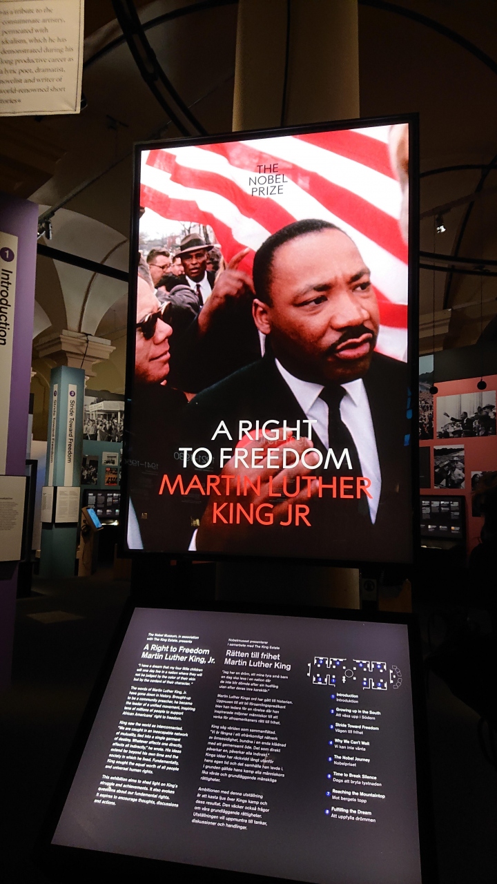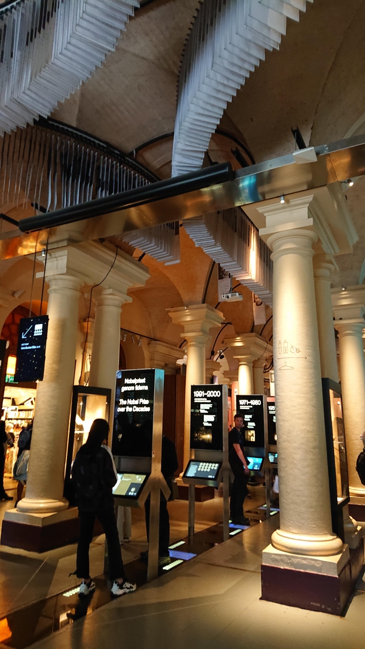 ガムラ・スタンの中心、大広場に面した元証券取引所だった建物が現在のノーベル博物館になってます。ノーベル賞の歴史や受賞者、業績についての展示、映像を見ることができ、特別展も開かれてます。英語のガイドツァーがあってノーベル賞の歴史や選考、受賞者が訪れたときのエピソードなども聞くことが出来ました。すべての受賞者についてのデーターを検索できます。特別展では平和賞の受賞者マーチンルーサーキング牧師に関する展示がありました。カフェではノーベル賞の晩餐会のデザートを食べることが出来ます。ここのカフェの椅子には受賞者のサインがありました。売店ではノーベル賞のメダルに似せたチョコが売っているので日本人観光客に人気でした。