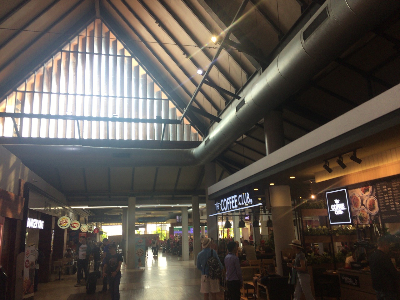 帰りの出発フロアはどこにいても全体が見えるほどの広さしかありませんが、免税品店やフードコートなどは一通り揃っています。