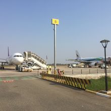 空港に着いてから驚いたのは、ボーディング・ブリッジや送迎バスがなく、タラップを降りて直接歩いてターミナルまで向かったことです。