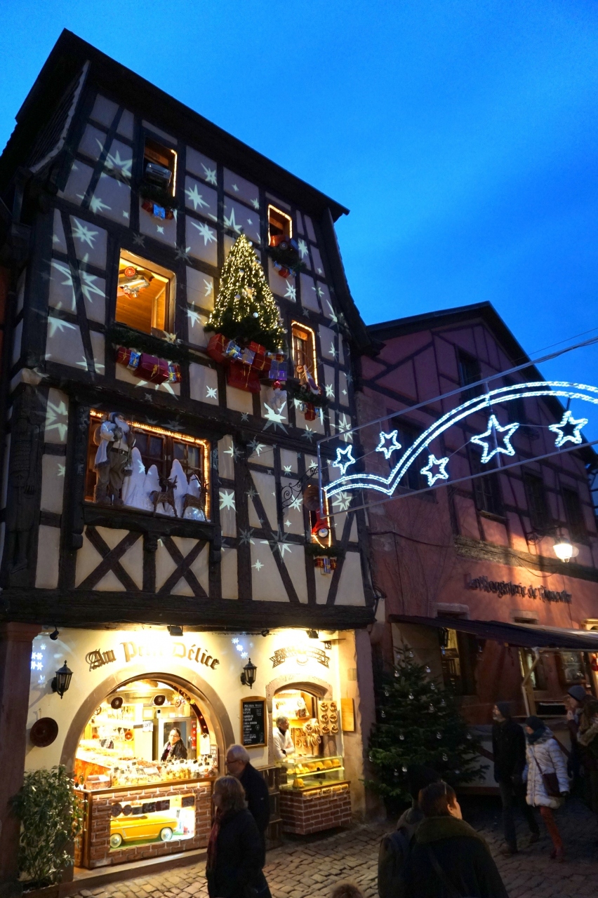 春は藤が木組みの家の軒を飾り、クリスマスの時期はクリスマス・デコレーションが施されます。クリスマス・マーケットが開催される間は、アルザスの村を巡るシャトル・バスが運行されるので、リクヴィルにも行きやすい。コルマールからちょっと足を延ばすことをオススメします!