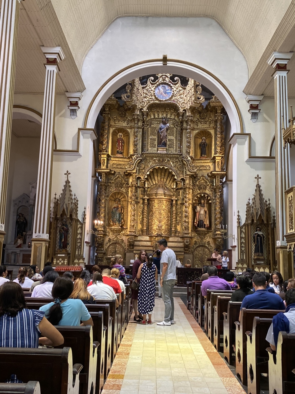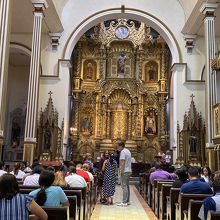 教会の祭壇は黄金でマホガニーで作られた上に金箔が貼り付けられた豪華なものです。
