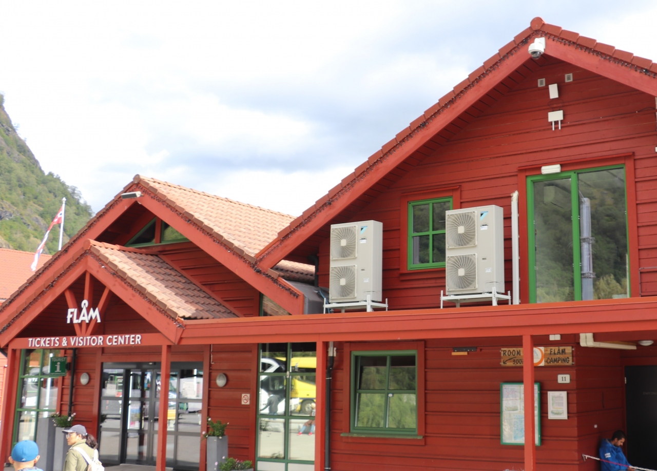 酸化鉄の塗料が塗られた紅い駅舎が可愛い駅です。ベルゲン鉄道の支線として1944年に完成したフロム鉄道の終点の駅です。利用する人はほとんど観光客のようです。構内にはレストランに売店もあります。隣接して鉄道博物館がありますが時間が無くて見学できませんでした。