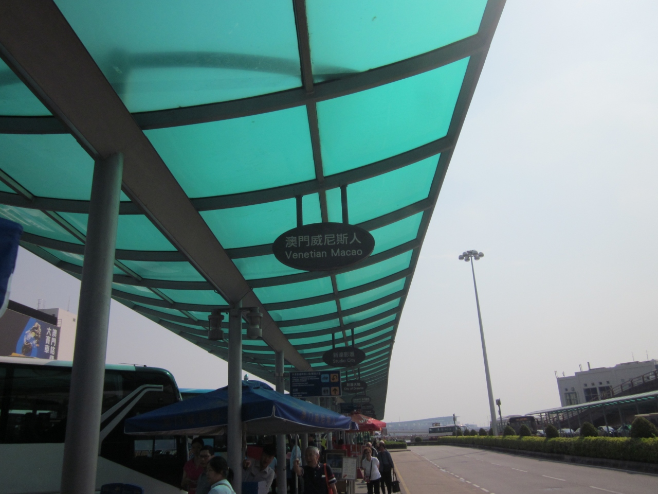 外港フェリーターミナルは、マカオ半島にあって、目の前に、ホテル専用バス停があって、無料で利用できるのでオススメです。セナド広場へは、グランドリスボア ホテル行きのバスで行けます。