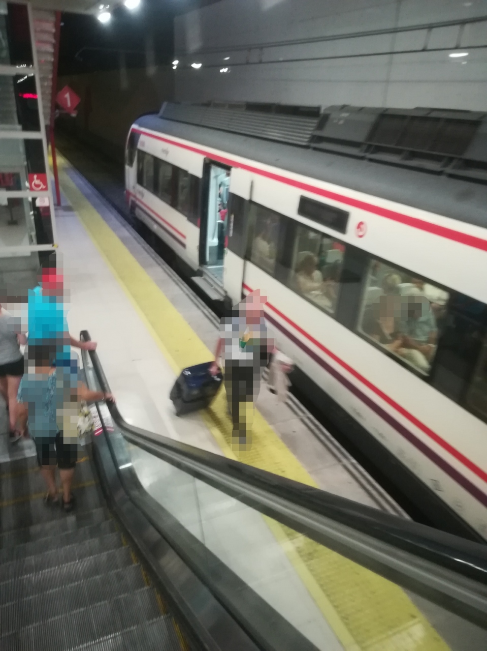 ミハス観光後バスでフエンヒローラセントロバスターミナルに到着。海を背にして山側へ徒歩3分位でフエンヒローラ駅看板が見えてきます。階段を降りると鉄道駅がありRenfeでマラガへ向かいました。