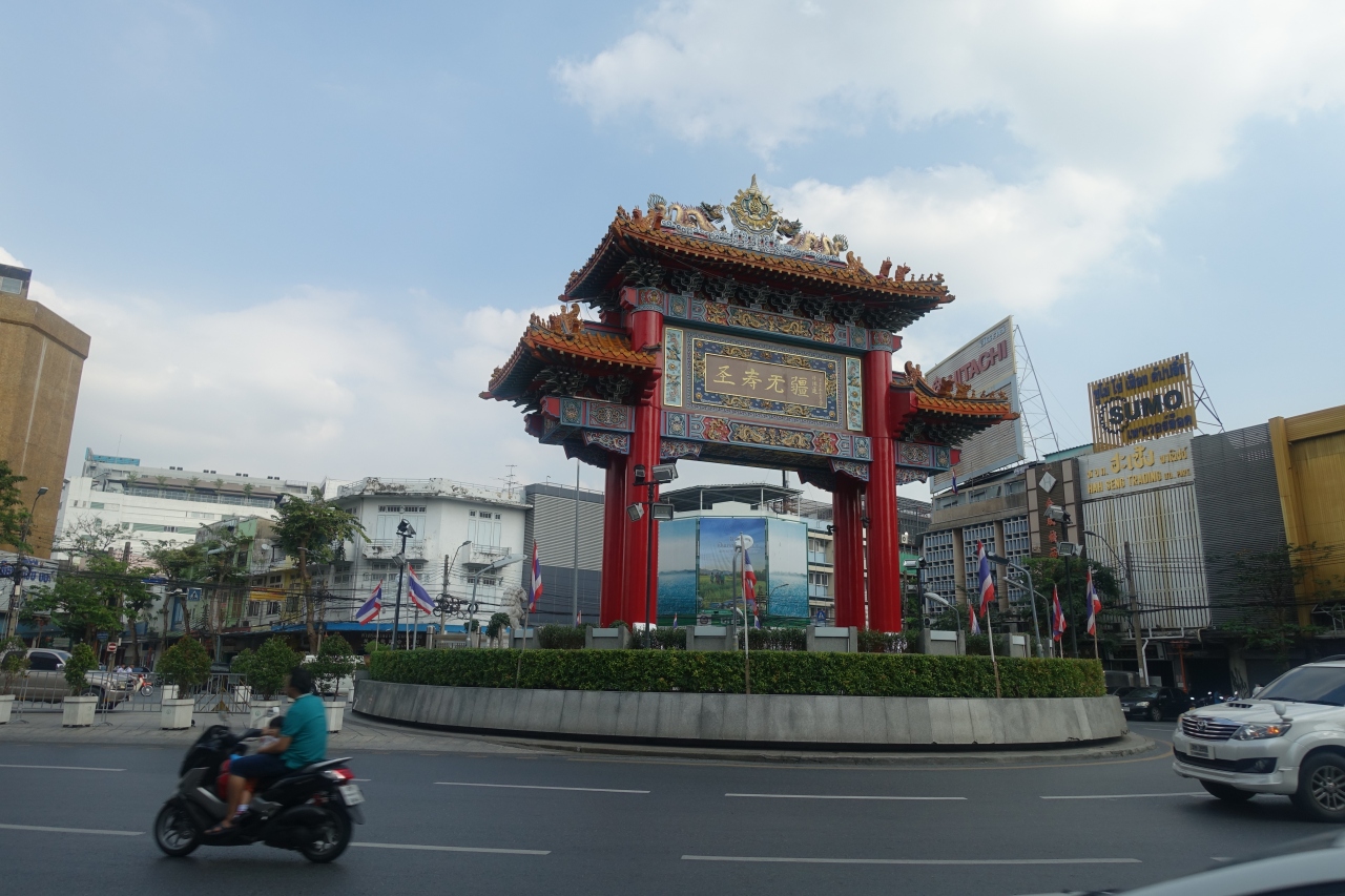 チャイナタウンのメインストリート。フアランポーン駅のほうから歩いて向かいました。中華門を過ぎてしばらくすると中国風の建物や寺院、漢字表記の看板、赤や黄色の看板が目立ってきます。2週間後の旧正月に向けて飾り付けがされている所もあり、少し早いですが旧正月の雰囲気を感じることができました。